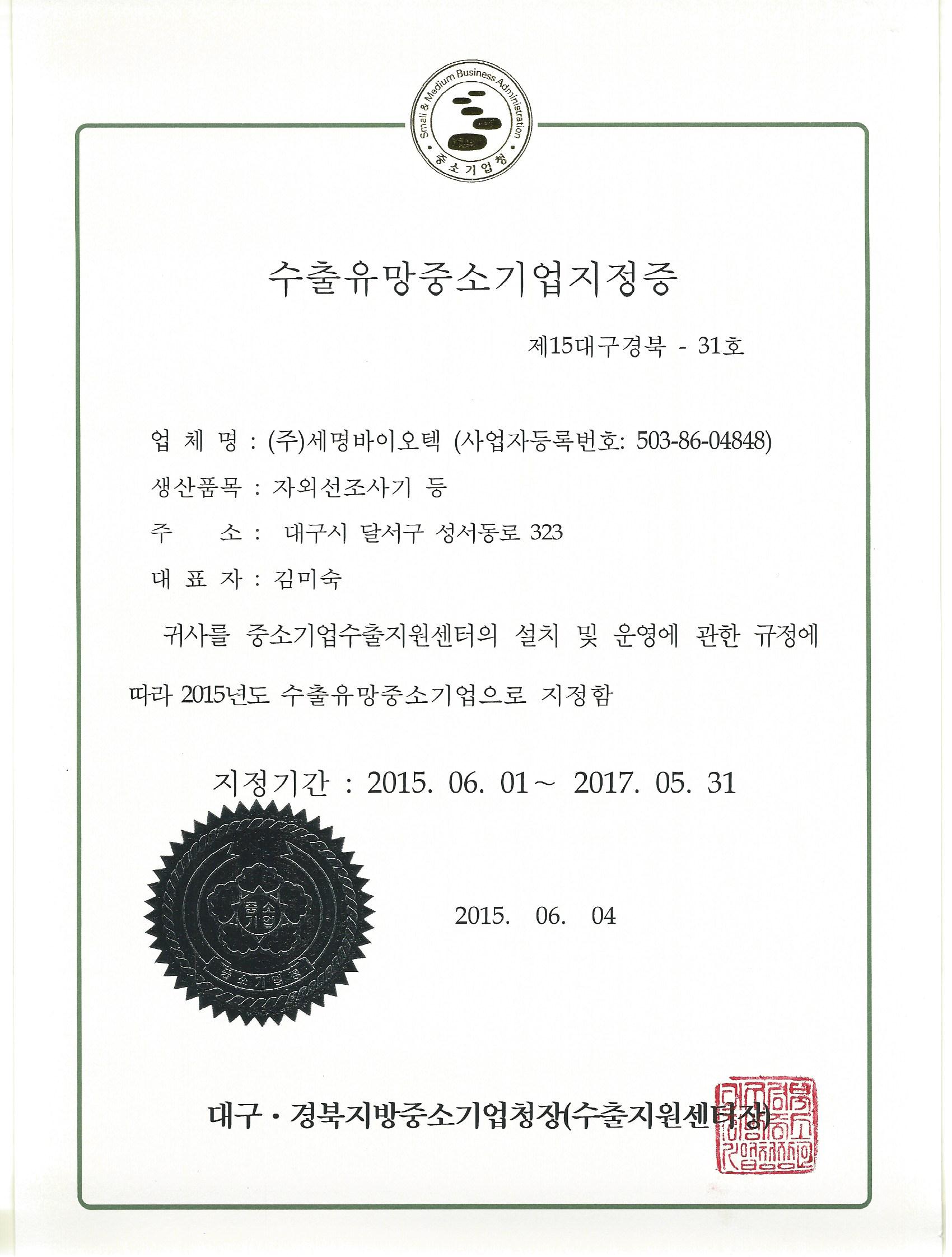 ¼öÃâÀ¯¸ÁÁß¼Ò±â¾÷ÁöÁ¤Áõ